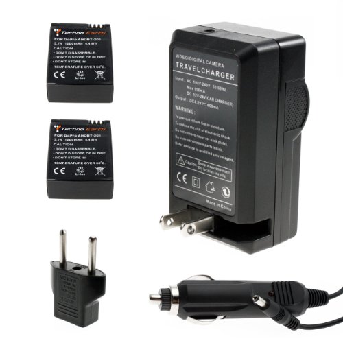 Get Techno Earth Lithium-ion Battery(2 Pack) and Charger for Gopro Ahdbt-301 Ahdbt-201 Go Pro Hero3, Hero 3, Hero3+, Hero 3+, 5m 11m 12p 1080p 4k Camera at the best price available today.